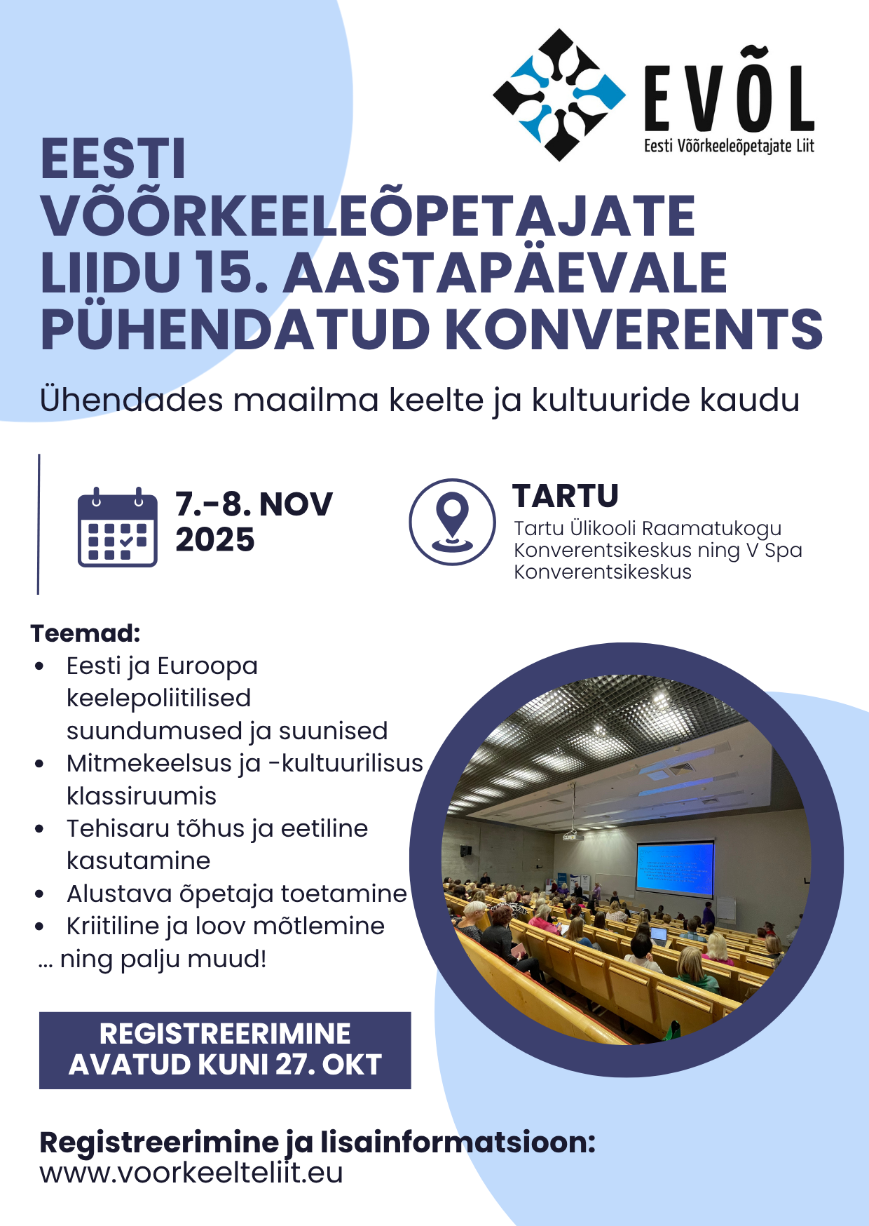 Kutse EVÕLI 15. aastapäeva konverentsile "Ühendades maailma keelte ja kultuuride kaudu"