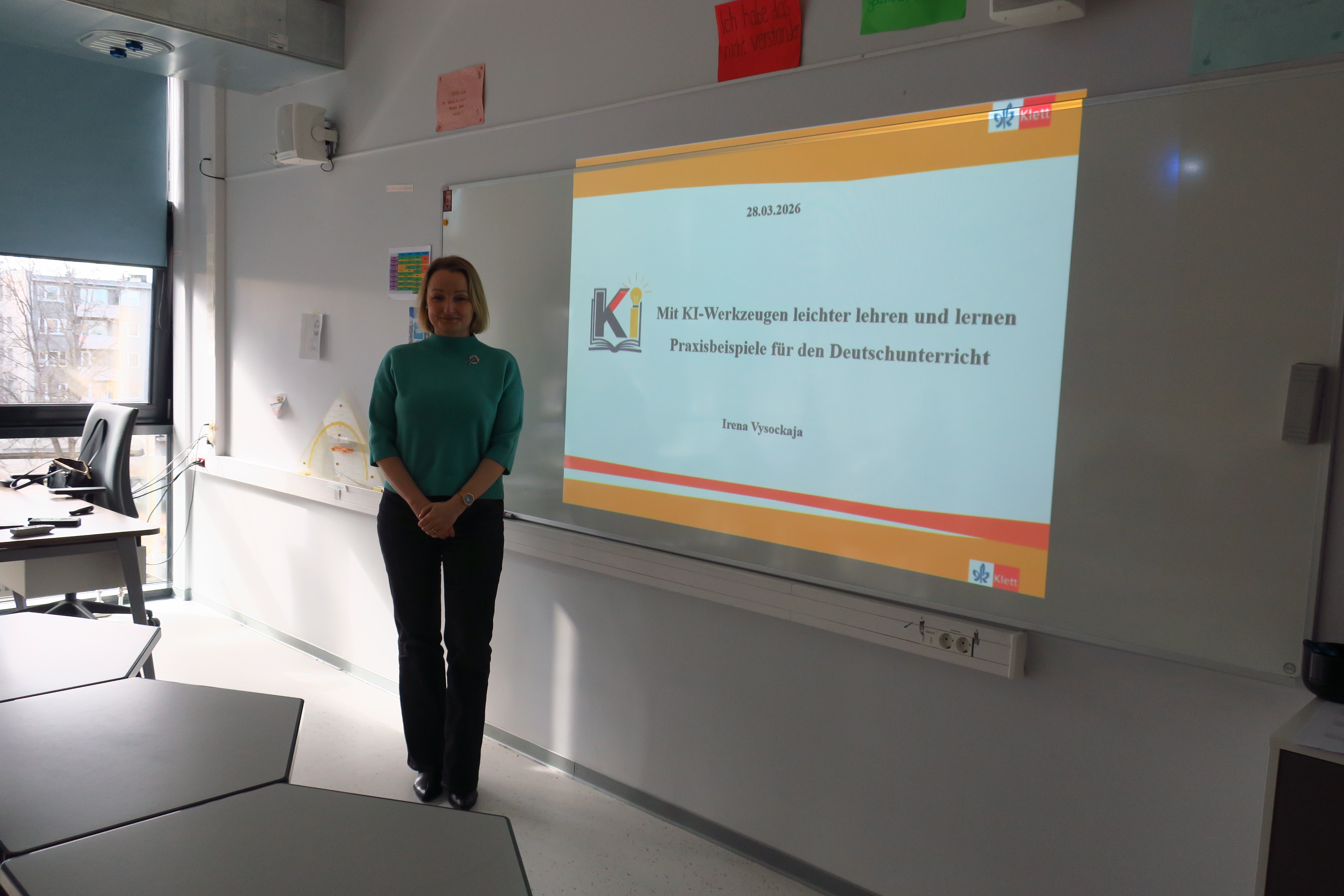 leichter lehren und lernen. Praxisbeispiele für den Deutschunterricht" (Irena Vysockaya, Klett); „Übungen mit Pfiff” (Maigi Varusk, Miina Härma Gymnasium); „Gefällt mir! Multimedial. Motivierend. Zukunftsorientiert.” (Urs Luger, Hueber Verlag, Österreich); “KI – Der Assistent für Lehrkräfte bei der Erstellung von Lernspielen. Beispiele für fertige Lernspiele und Übungen.” (Anneli Kesksaar, Tallinner Südalinna-Schule).